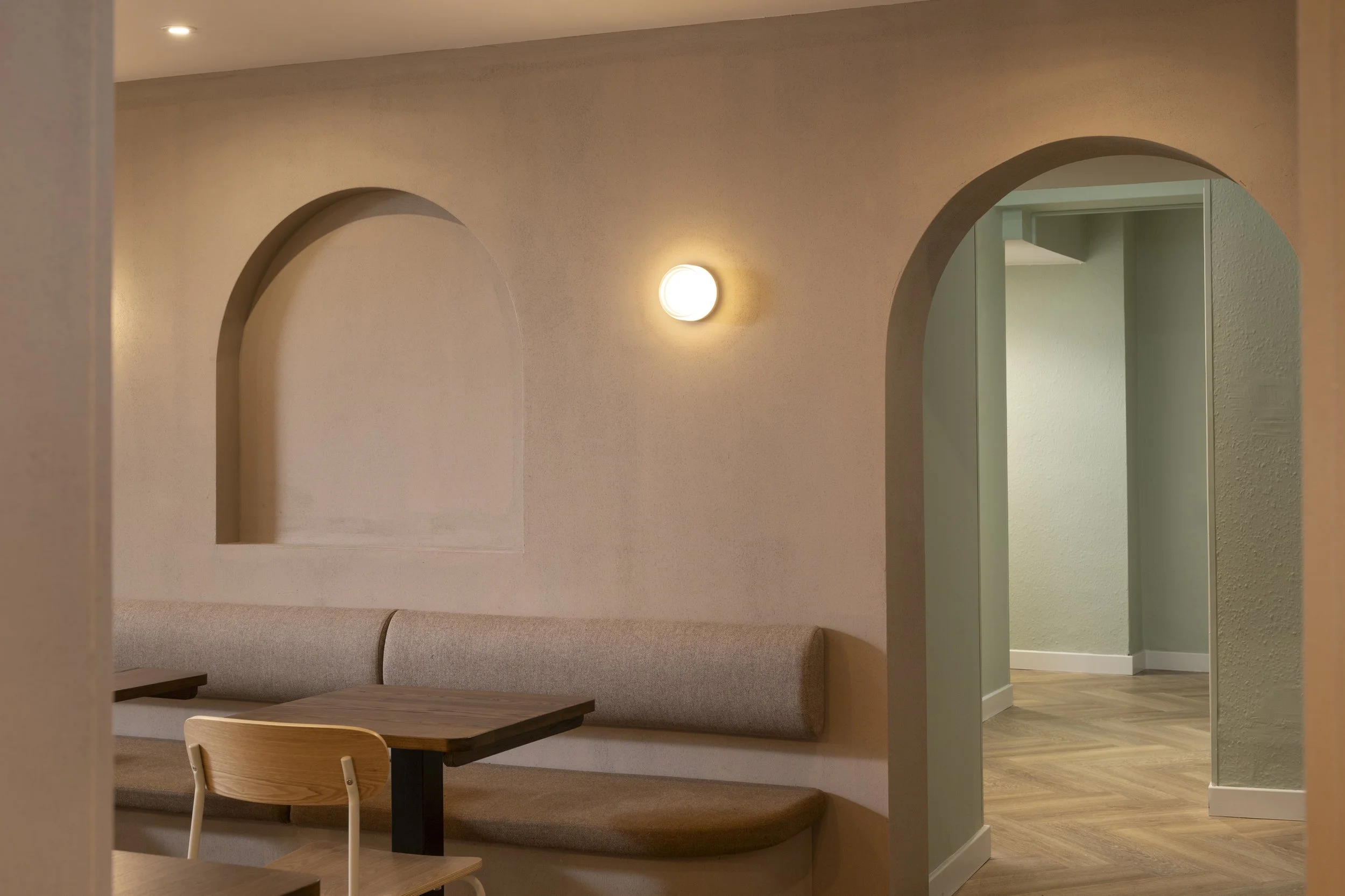 The team at Fortuna Coffee Bar came to us to design and fit their second premises on Frederick Street in Edinburgh, after the success of their existing cafe on Queen street. With a palette of taupe textured paint, sandy quartz, terracotta red, dark oak and white tiles, we transformed the former tearoom into a beautiful, functional coffee bar. By stripping out some of the existing, bulky joinery and replacing it for lighterweight fixtures, the space was opened up to give customers breathing room and allow natural light to find it’s way around the cafe easier. The steps outside were adapted to provide comfortable seating. The back of house areas were also tackled - the kitchen was created in the small room behind the servery, making use of the small space as efficiently as possible.